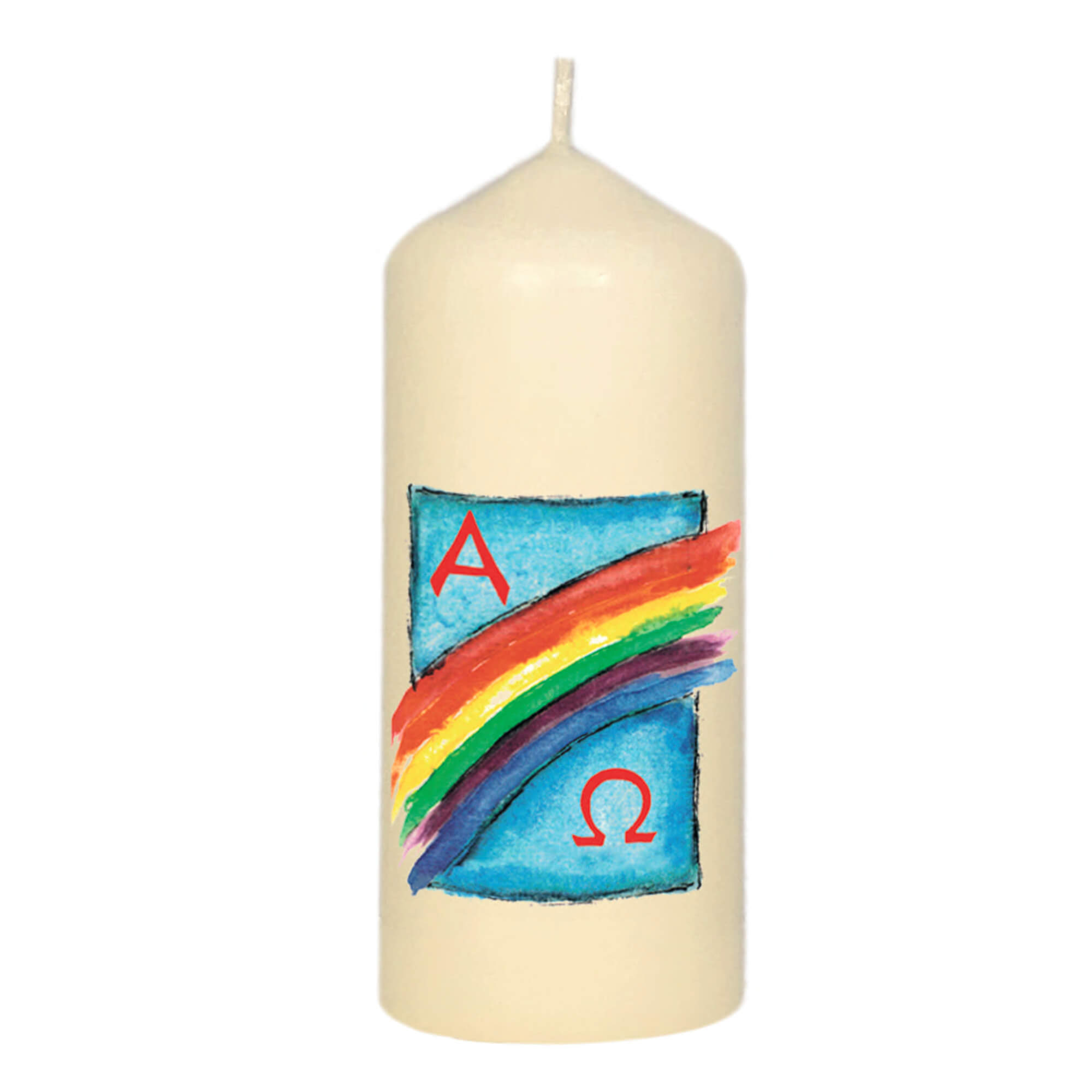 Schöne Ostertischkerze, die nicht nur zum Osterfest ein Hingucker ist. Die Osterkerze ist ein Zeichen für Ewiges Leben und dafür, dass Jesus von den Toten auferstanden ist. Verziert ist die Kerze im Transferdruck. Abgebildet sind der erste und der letzte Buchstabe des griechischen Alphabetes, „Alpha und Omega“ als „Anfang und Ende“. Verpackt in Cellophan. Durchmesser 5 cm, Höhe 12 cm