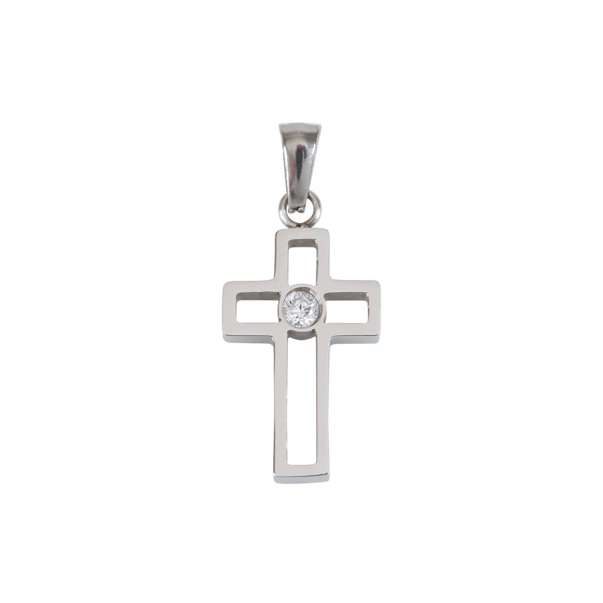 Modischer Kreuzanhänger aus Edelstahl mit Zirkonia Stein.