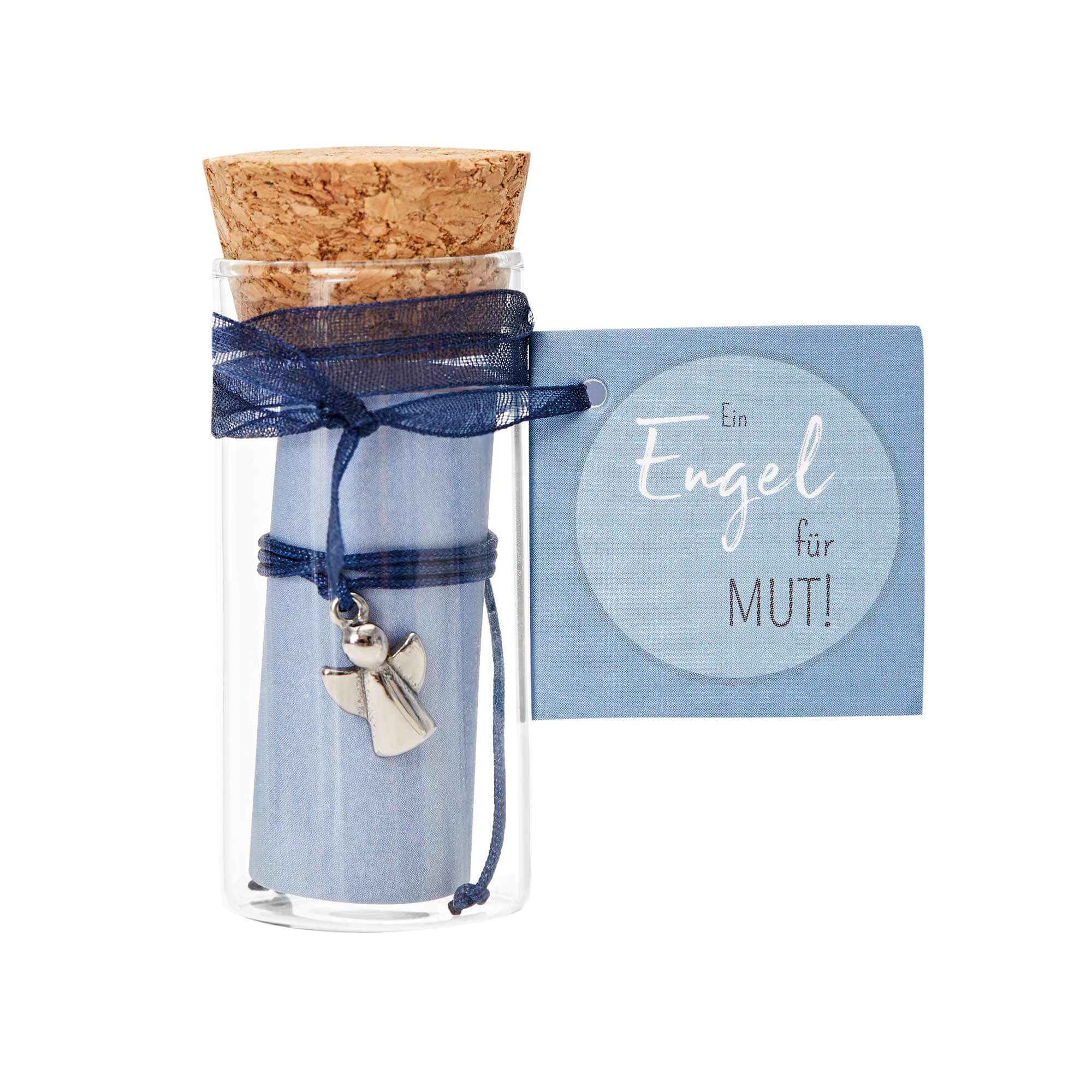 Das feine Armband mit dem Engel-Anhänger aus Edelstahl, hübsch in einem kleinen Gläschen mit Korkstopfen verpackt, ist ein feines, kleines Geschenk.
