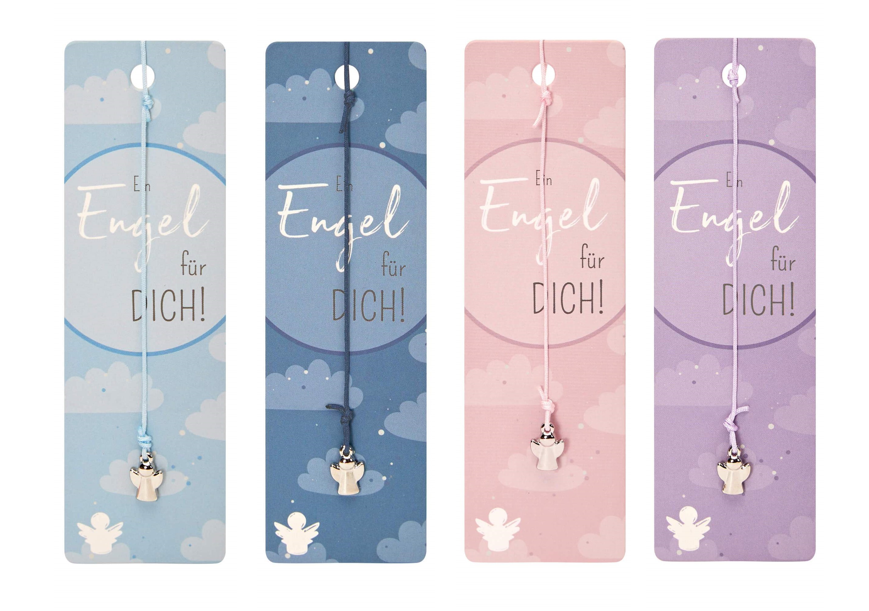 Schmucke Lesezeichen mit kleiner Botschaft „Ein Engel für DICH“ auf der Vorderseite. Dort ist zusätzlich ein feiner, silberfarbener Engel-Anhänger befestigt, am farblich passenden Stoffband.