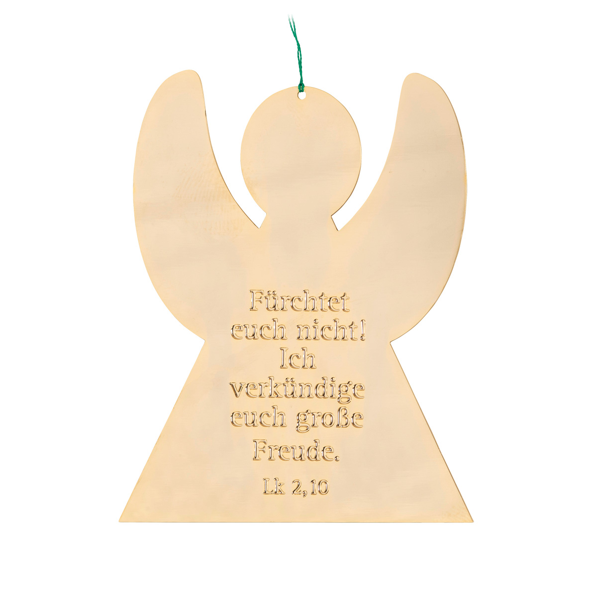Messingornament Engel, vergoldet und mit eingravierten Text: