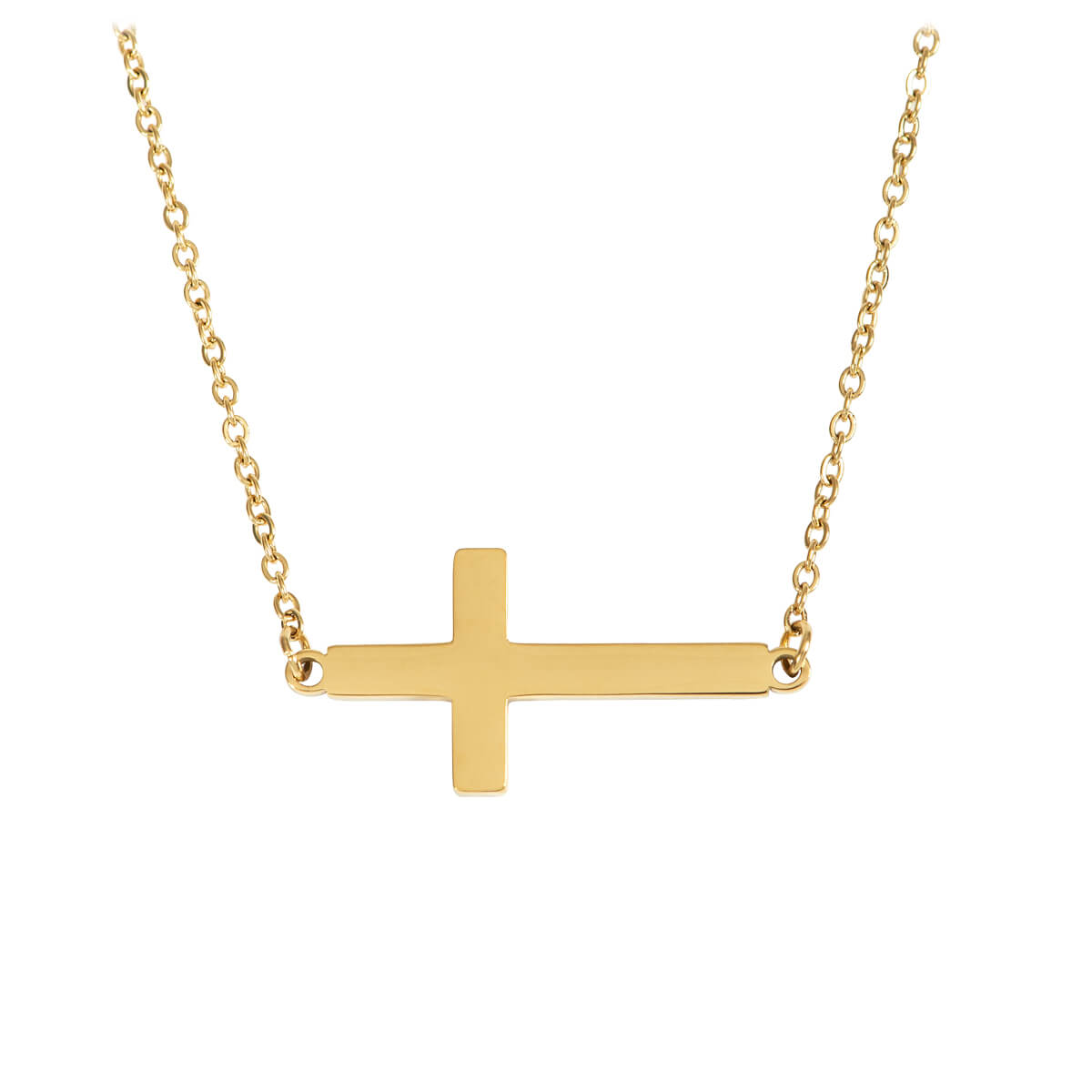Moderne Halskette mit Kreuz aus glänzendem Edelstahl Goldauflage.