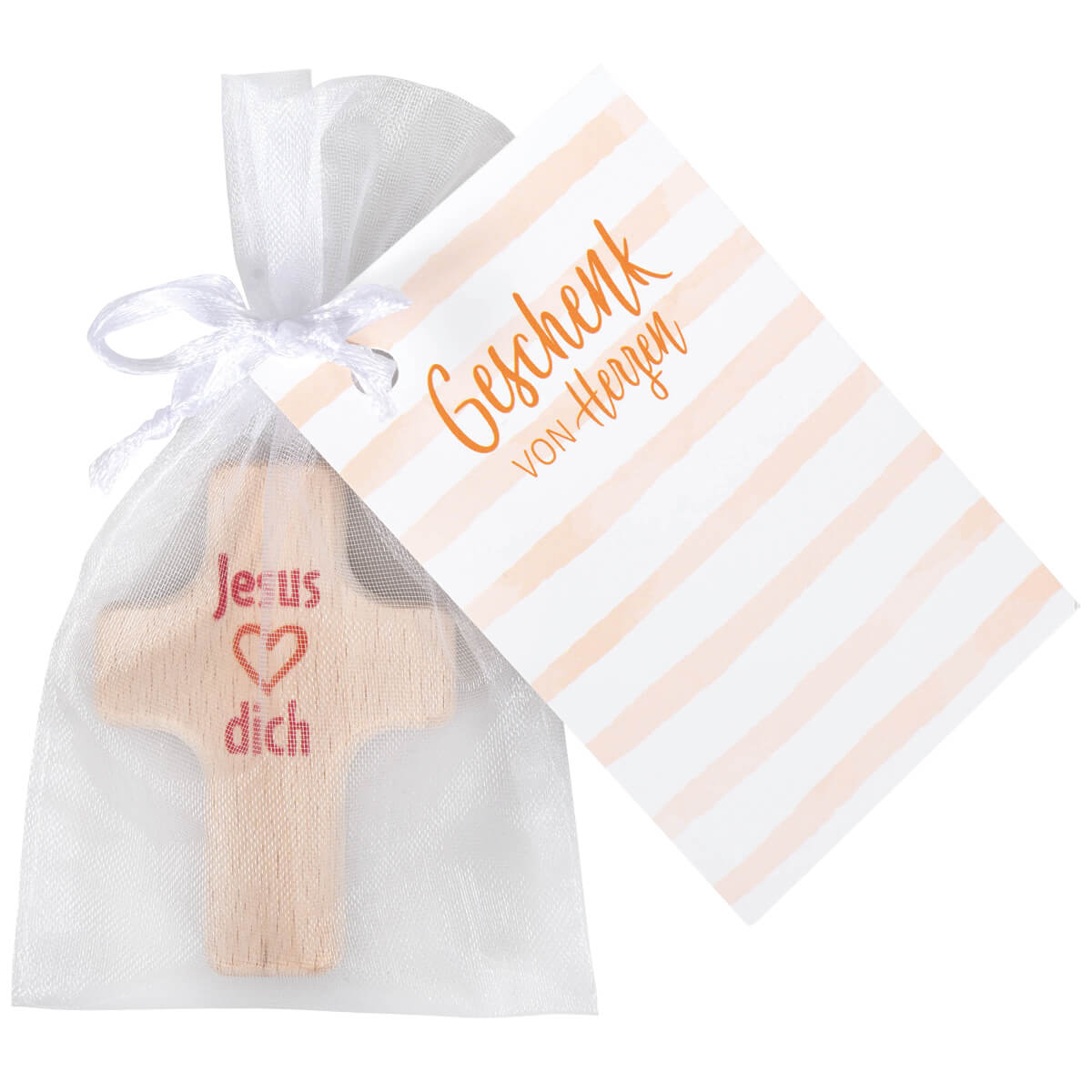 Schöner Handschmeichler Kreuz Jesus liebt dich, abgerundete Kanten, schön verpackt im Organzabeutel.