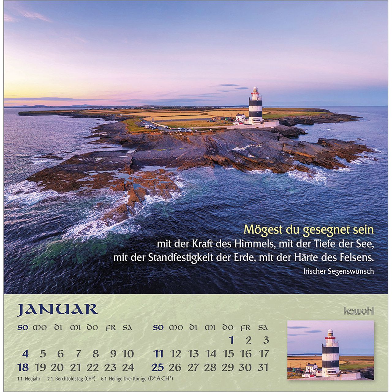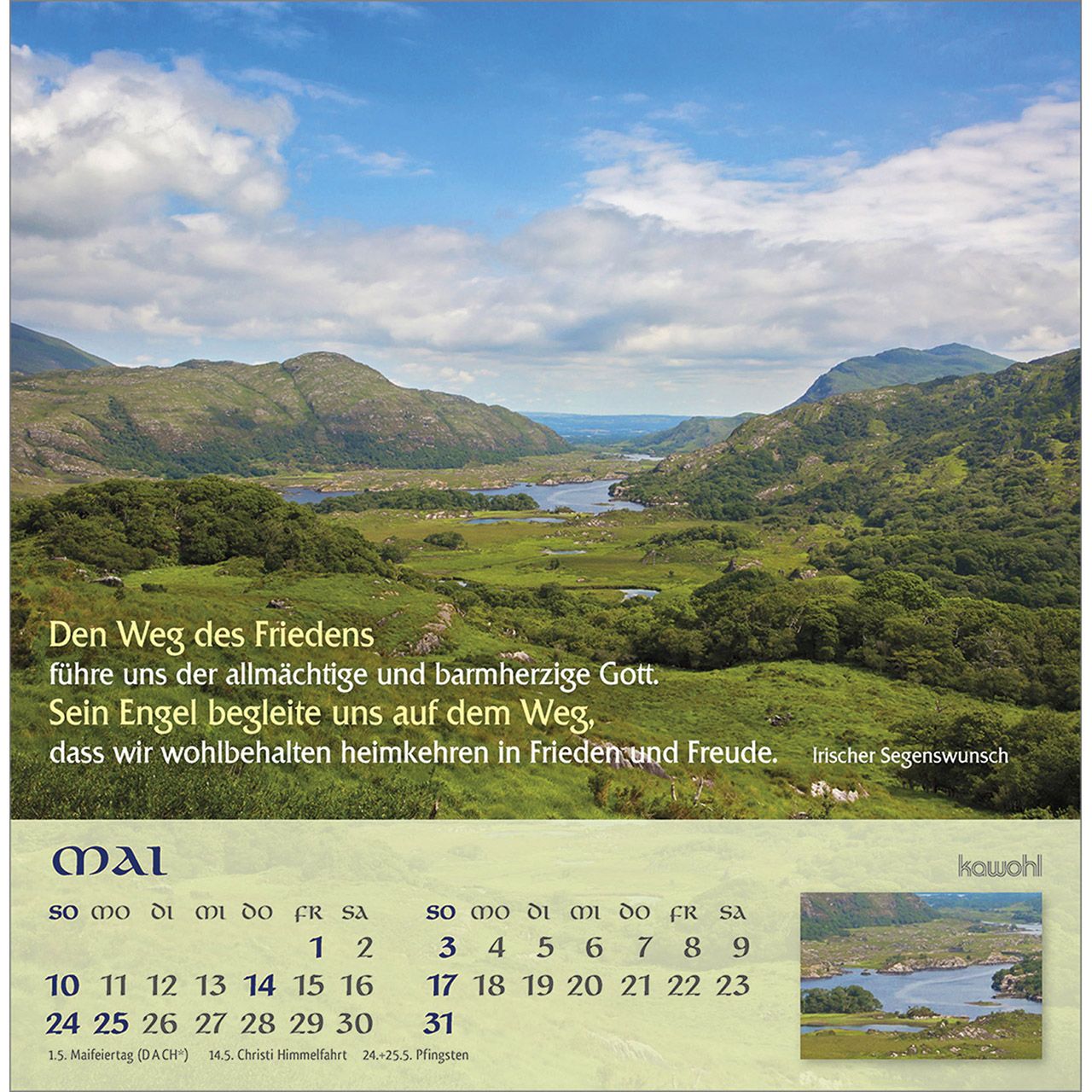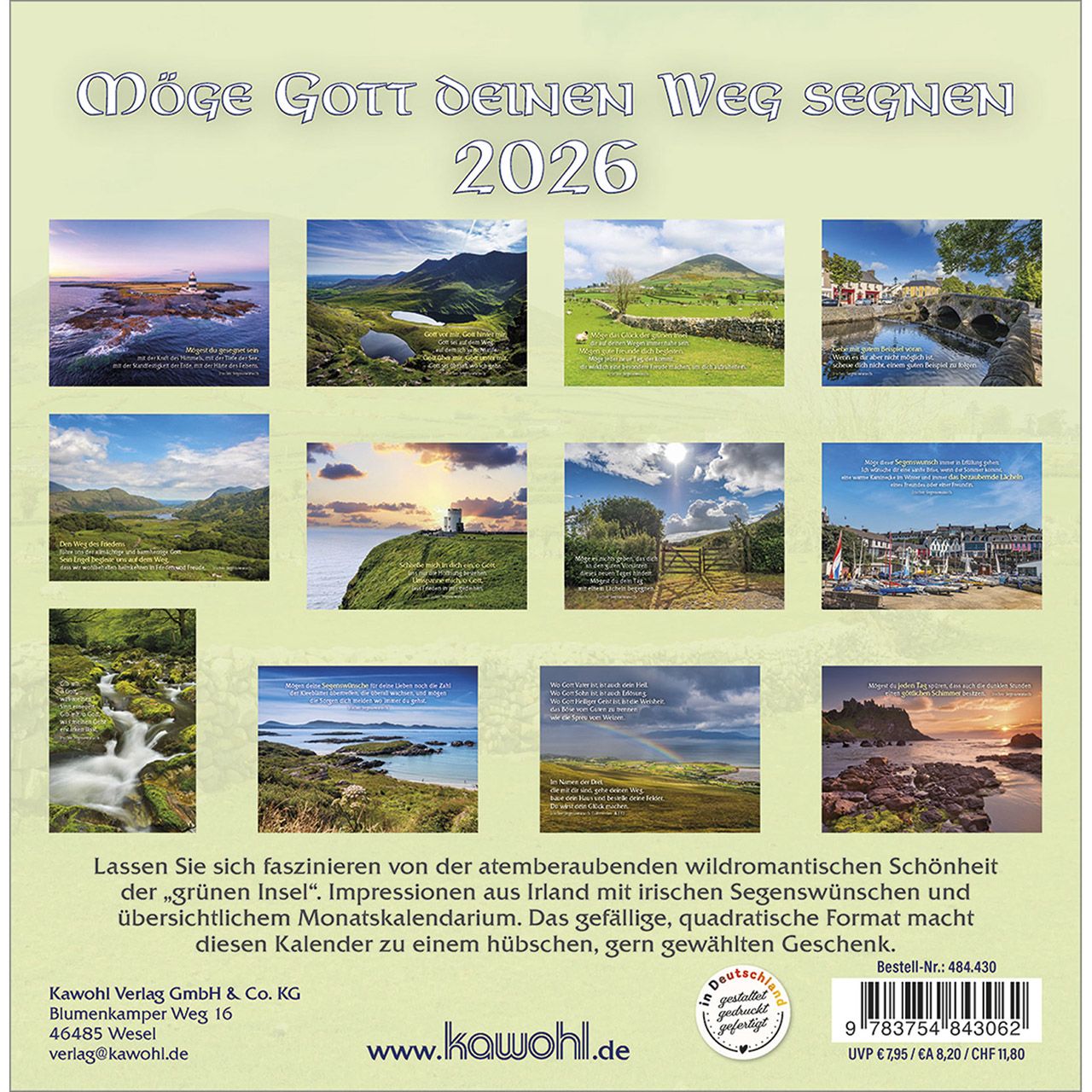 Postkartenkalender mit irischen Impressionen und Segenswünschen - Lassen Sie sich faszinieren von der atemberaubenden wildromantischen Schönheit der "grünen Insel". Impressionen aus Irland mit irischen Segenswünschen und übersichtlichem Monatskalendarium.