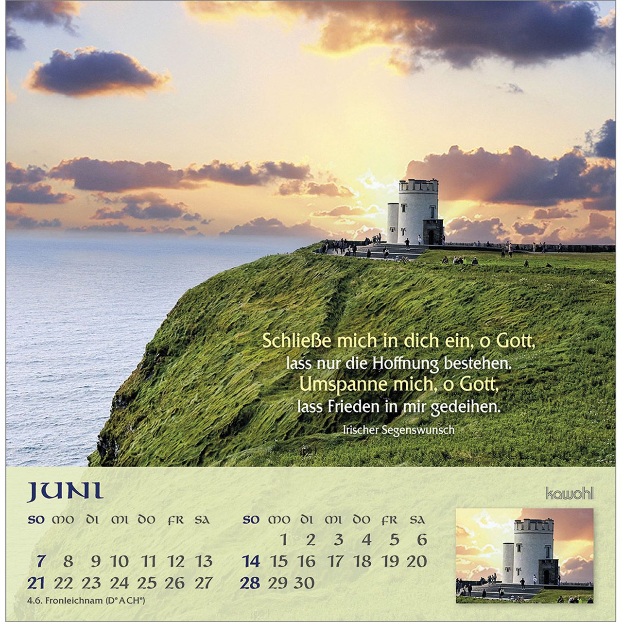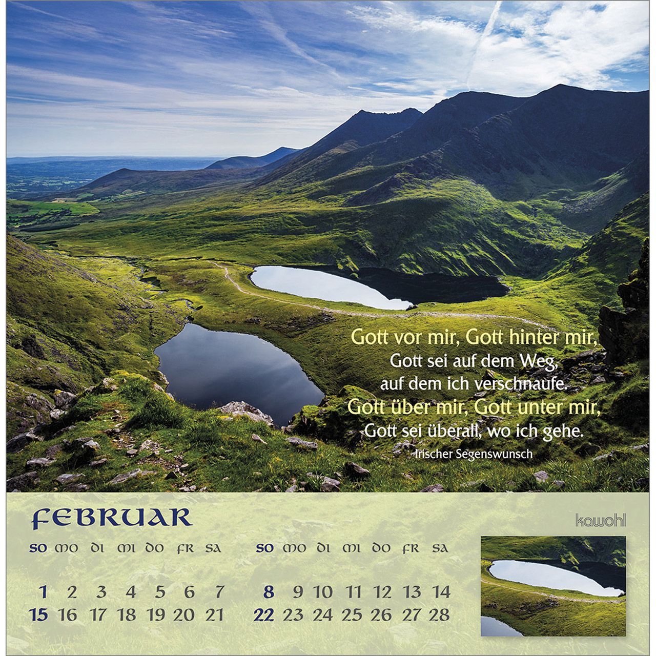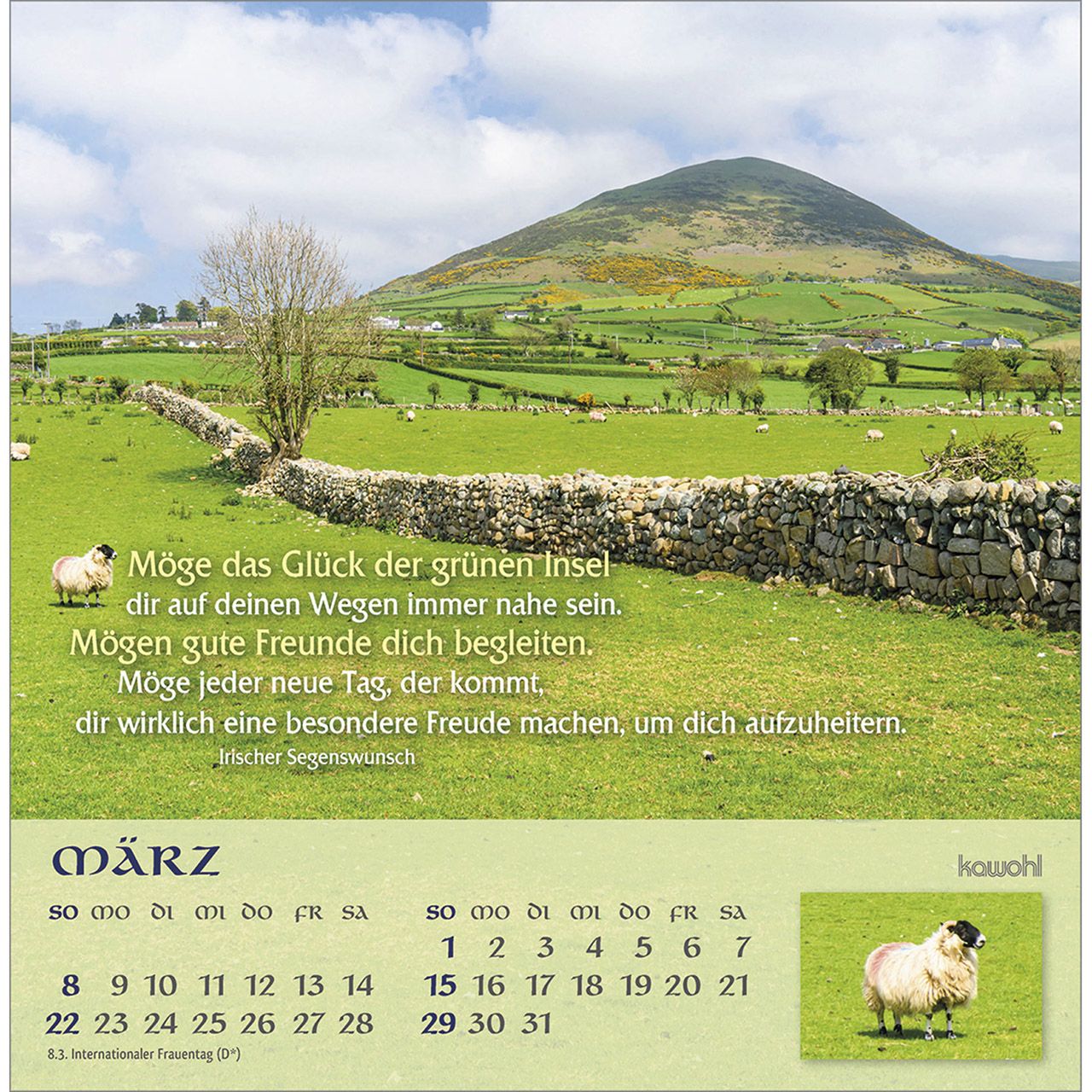 Postkartenkalender mit irischen Impressionen und Segenswünschen - Lassen Sie sich faszinieren von der atemberaubenden wildromantischen Schönheit der "grünen Insel". Impressionen aus Irland mit irischen Segenswünschen und übersichtlichem Monatskalendarium.