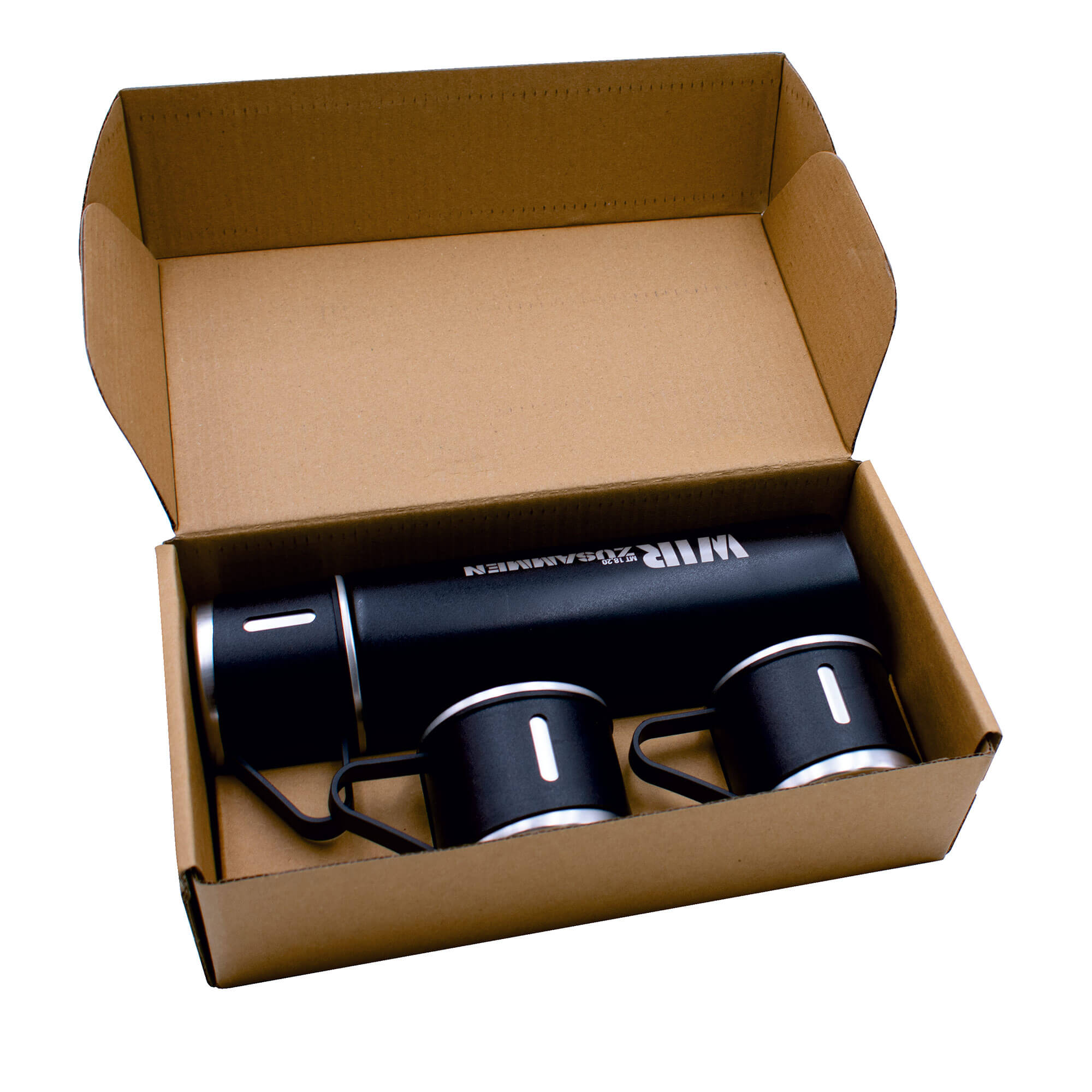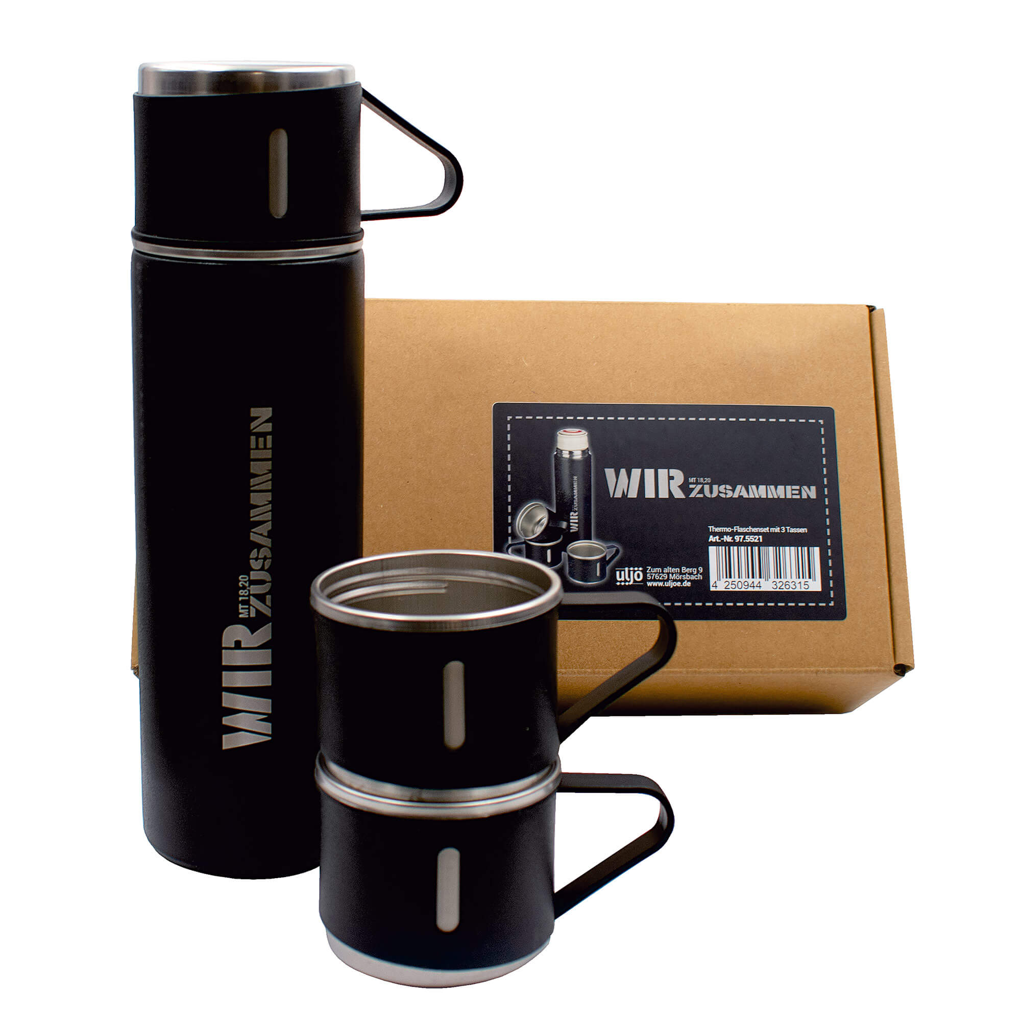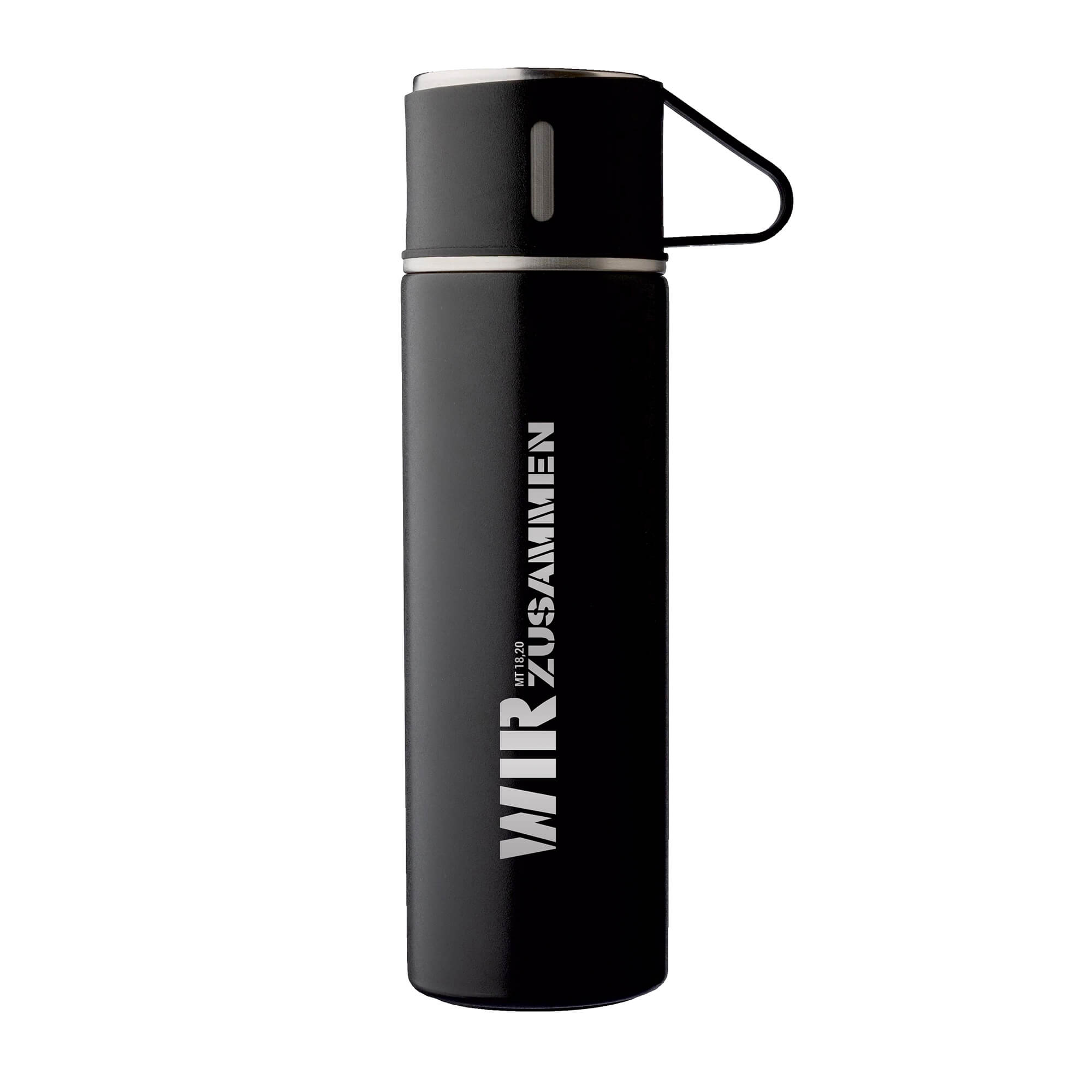 Doppelwandiges Flaschenset mit 3 Tassen "Wir zusammen Mt 18,20"
