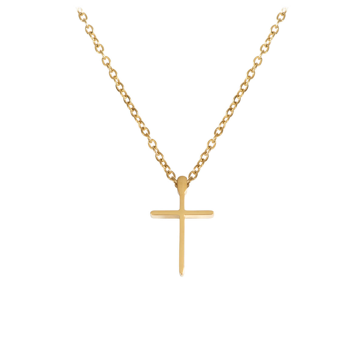 Schöne, feine Halskette mit zierlichem Kreuz aus glänzendem Edelstahl mit Goldauflage.