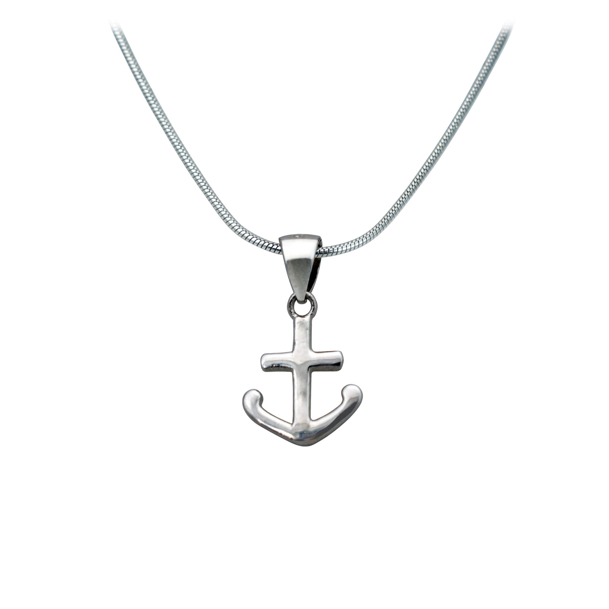 Schöne Schlangenhalskette mit Anhänger „Kreuz“, Größe ca. 1,4 cm. Anhänger und Kette sind aus 925 Silber; die Kette ist 45 cm lang und kann auf 42 cm verkürzt werden. Ein besonders wertiges Geschenk, verpackt im Etui.