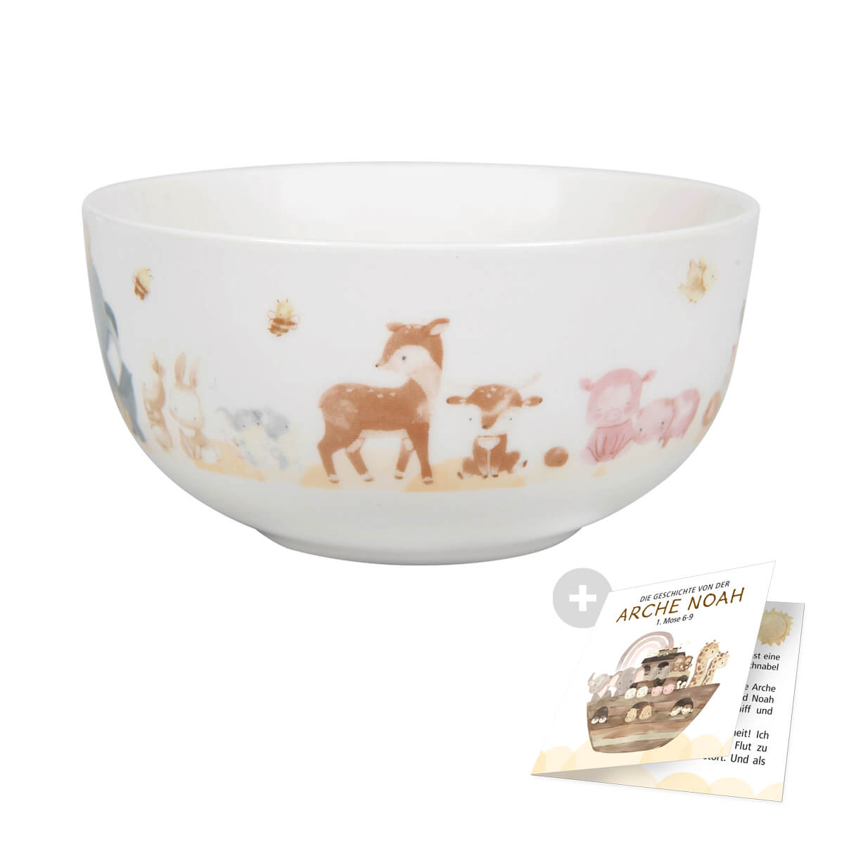 Passend zur neuen Kindertasse gibt es auch die Müslischale Arche Noah mit wunderschönen Tiermotiven und im Schaleninneren die Abbildung der Arche Noah.