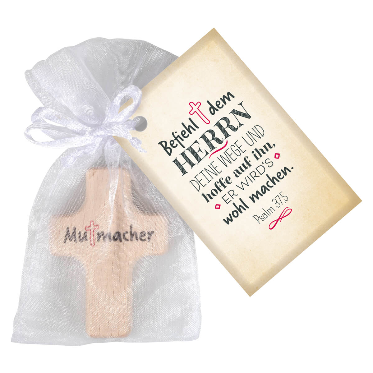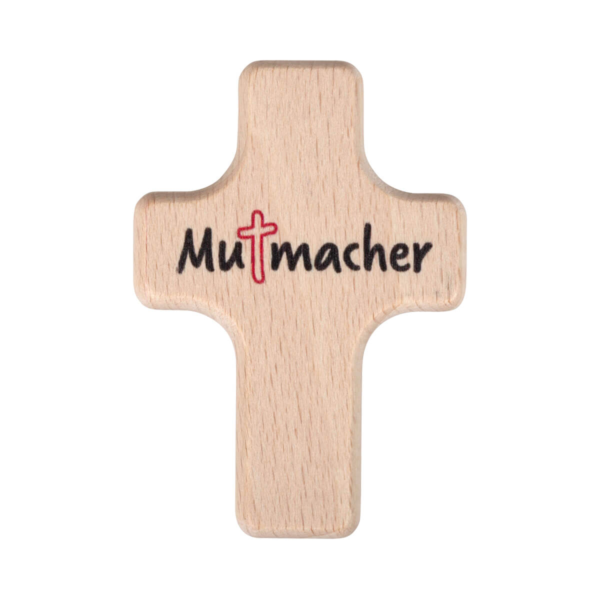 Handschmeichler in Kreuzform mit Text Mutmacher.