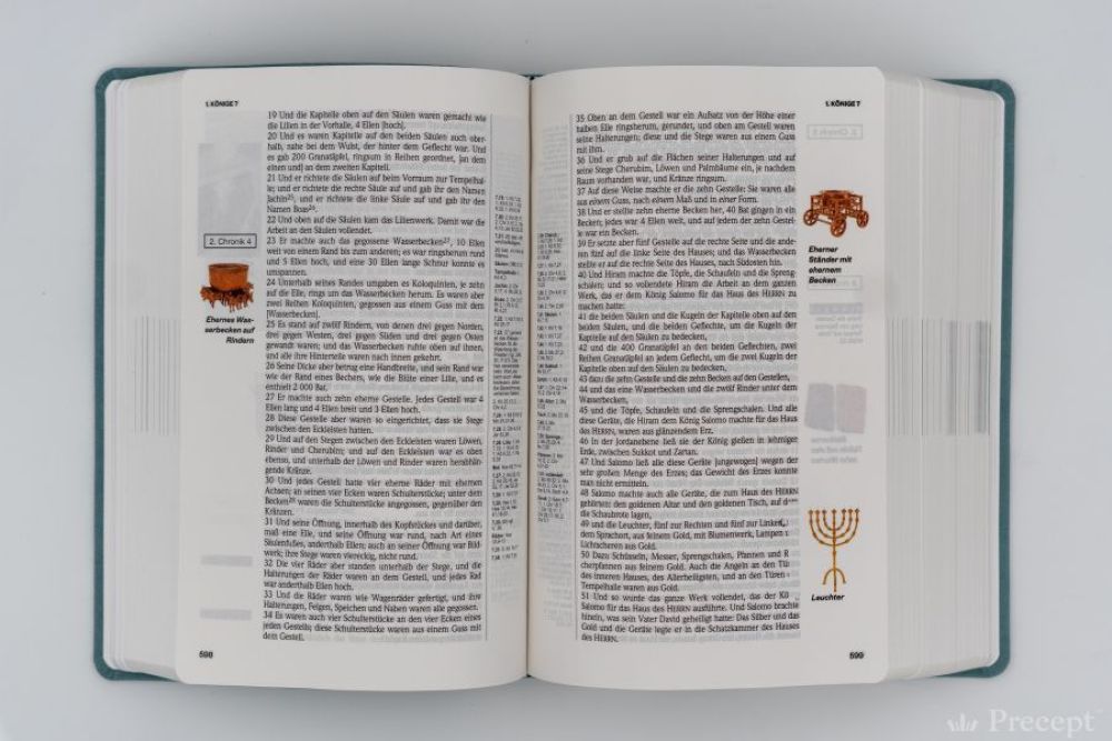- Illustrationen, ein biblischer Zeitstrahl, Karten und Anleitungen zu Precepts Methode des Bibelstudiums unterstützen das Studium.