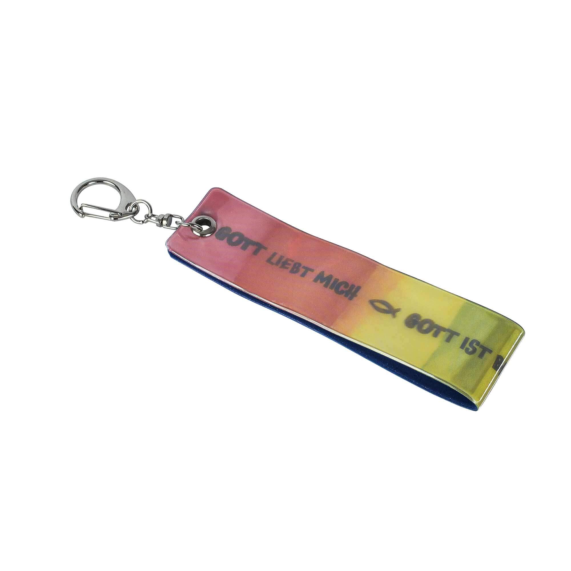 Die fallen auf: Unsere reflektierenden Schlüsselanhänger (Art.-Nr. 972918 und 972919) sind nicht nur ein modisches Accessoire, sondern auch ein wichtiger Begleiter in der Dunkelheit. Dank ihrer reflektierenden Eigenschaften sorgen sie dafür, dass man auch bei schlechten Lichtverhältnissen besser gesehen wird. Bedruckt sind die Anhänger mit den stärkenden Worten „Gott liebt mich – Gott ist bei mir – Gott beschützt mich“. Der Schlüsselanhänger ist zur Befestigung mit einem Karabiner versehen.