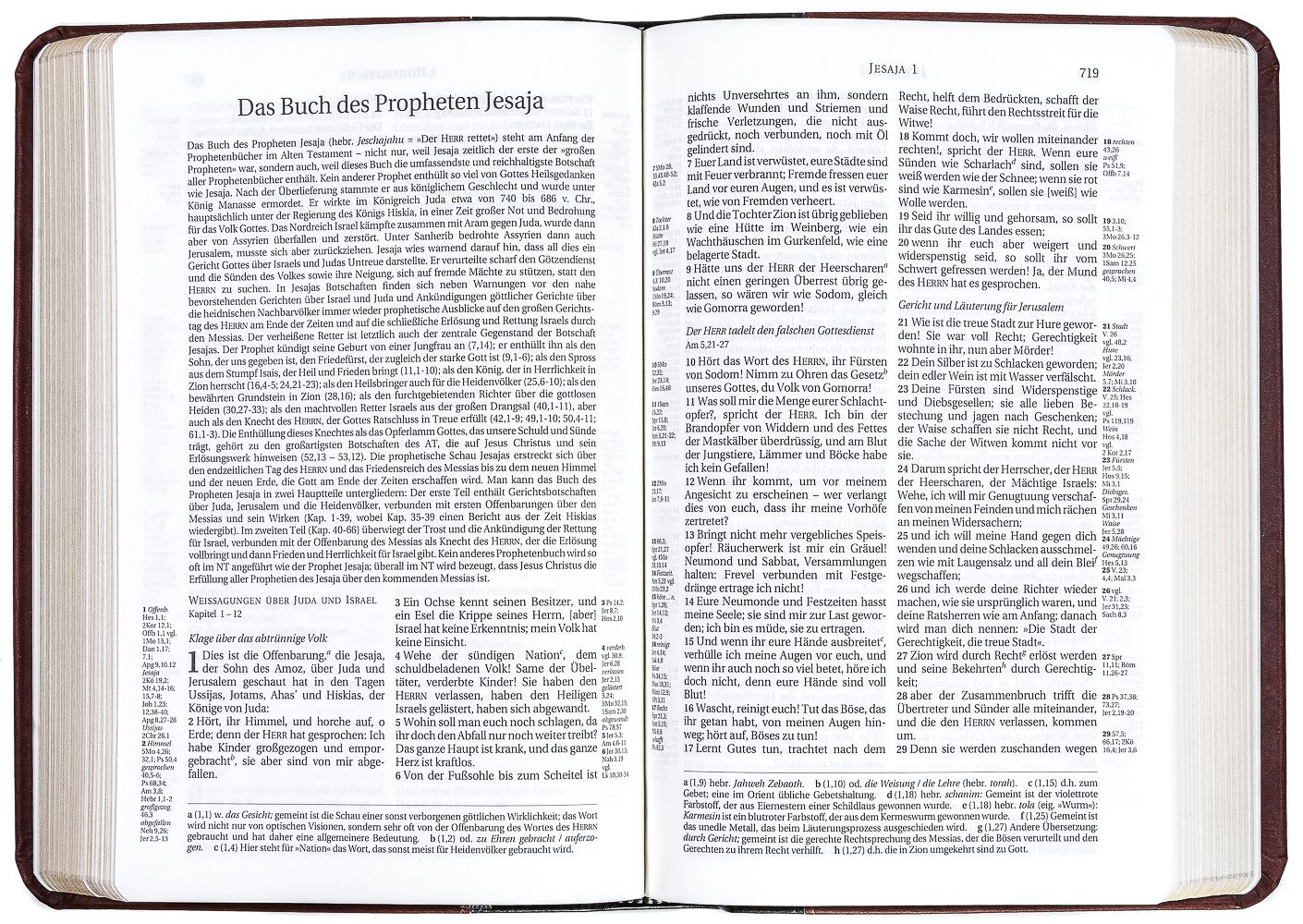Neben Überschriften zur Kapitelübersicht, Parallelverweisen und textlichen Anmerkungen beinhaltet diese kompakte Ausgabe einen ausführlichen Anhang mit Sach- und Worterklärungen, Diagrammen und Tabellen, diversen Abbildungen, farbigen Karten sowie verschiedenen Bibelleseplänen.