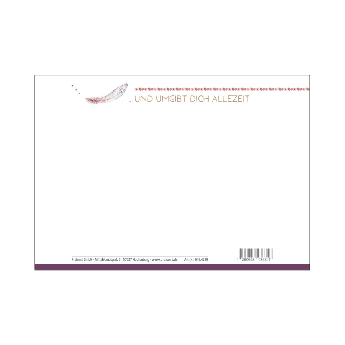 Für kleine Grüße oder als Mini-Poster: Postkarte im schönen Design Kranz mit Feder "Gott hält Dich in seiner Hand" auf stabilem Postkartenkarton mit edler partieller Lackierung.