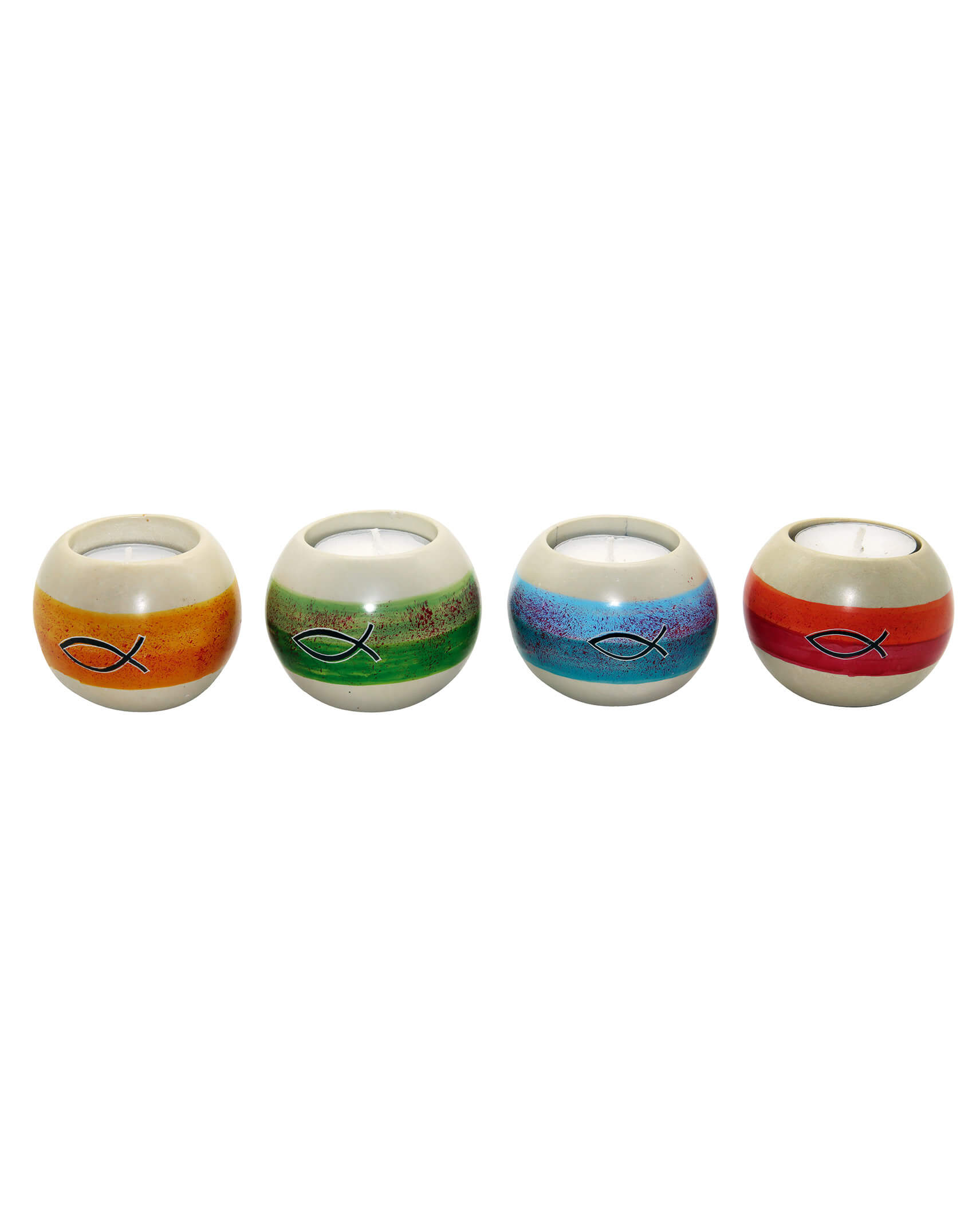 Ein Hingucker auf jedem Tisch sind die handgefertigten Teelichthalter „Ichthys“ aus Speckstein.