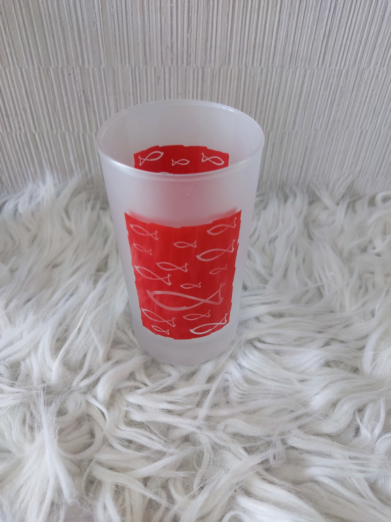 Trinkglas Fische, rot, satiniert, Höhe 11,5 cm, Inhalt 0,2 l