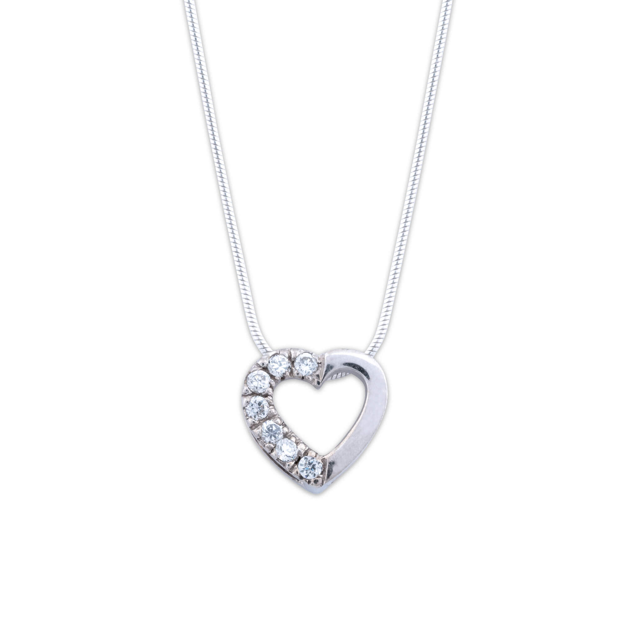 Anhänger und Kette aus 925er Sterlingsilber; der Anhänger ist mit 7 Zirkonia-Steinen besetzt, ca 1,2 cm breit, Kettenlänge ca. 46 cm, verkürzbar auf 42 cm, verpackt in Etui