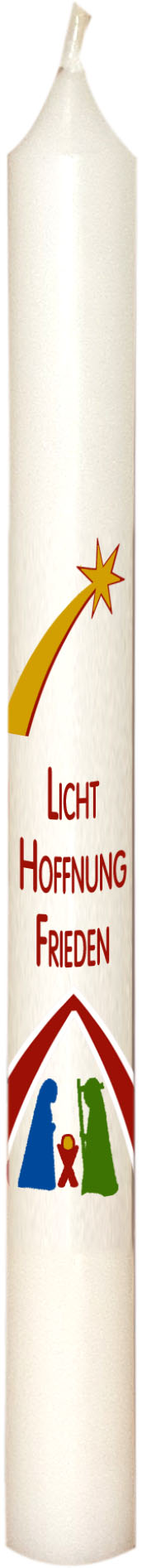 Kleine Stabkerze mit Text: Licht Hoffnung Frieden.