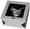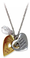Text auf gold- und silberfarbenen Anhängern plus Kristall, im Geschenketui