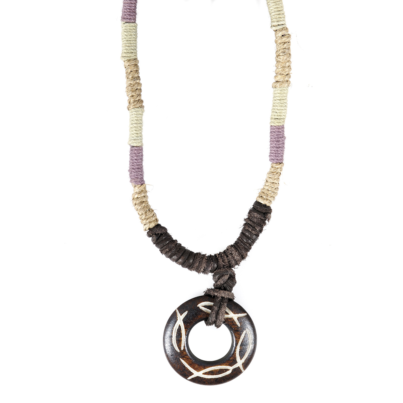 Material: Band echtes Leder mit Textilbändern, Anhänger Holz