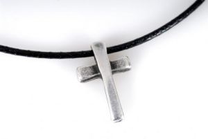 Halskette mit schwarzen Band mit schön gestalteten Kreuz.
