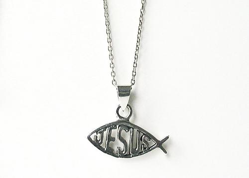 Kette mit Anhänger "Jesus/Fisch" - 925er Sterlingsilber
