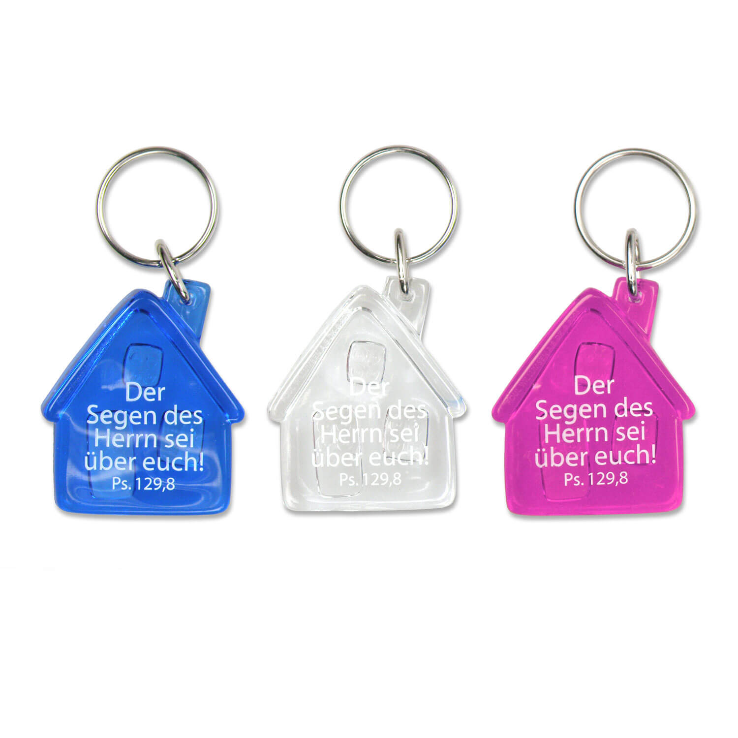 Schlüsselanhänger aus transparentem Acryl, mit Textaufdruck "Der Segen des Herrn sei über euch! Ps. 129,8", 5 cm, Preis pro Stück